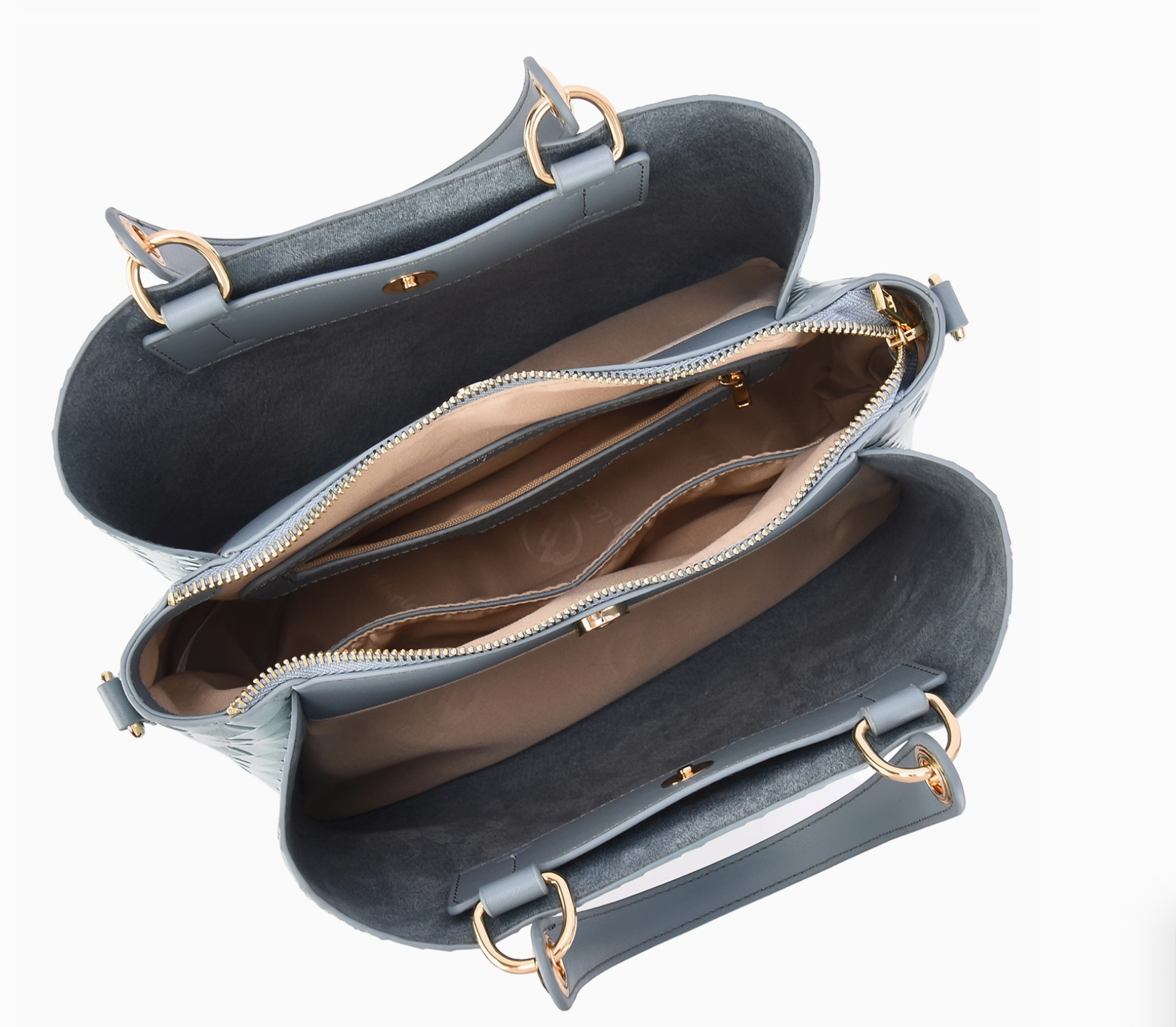 - - Interior: Center zipper compartment: 1 zipper pocket, 2 slip pockets