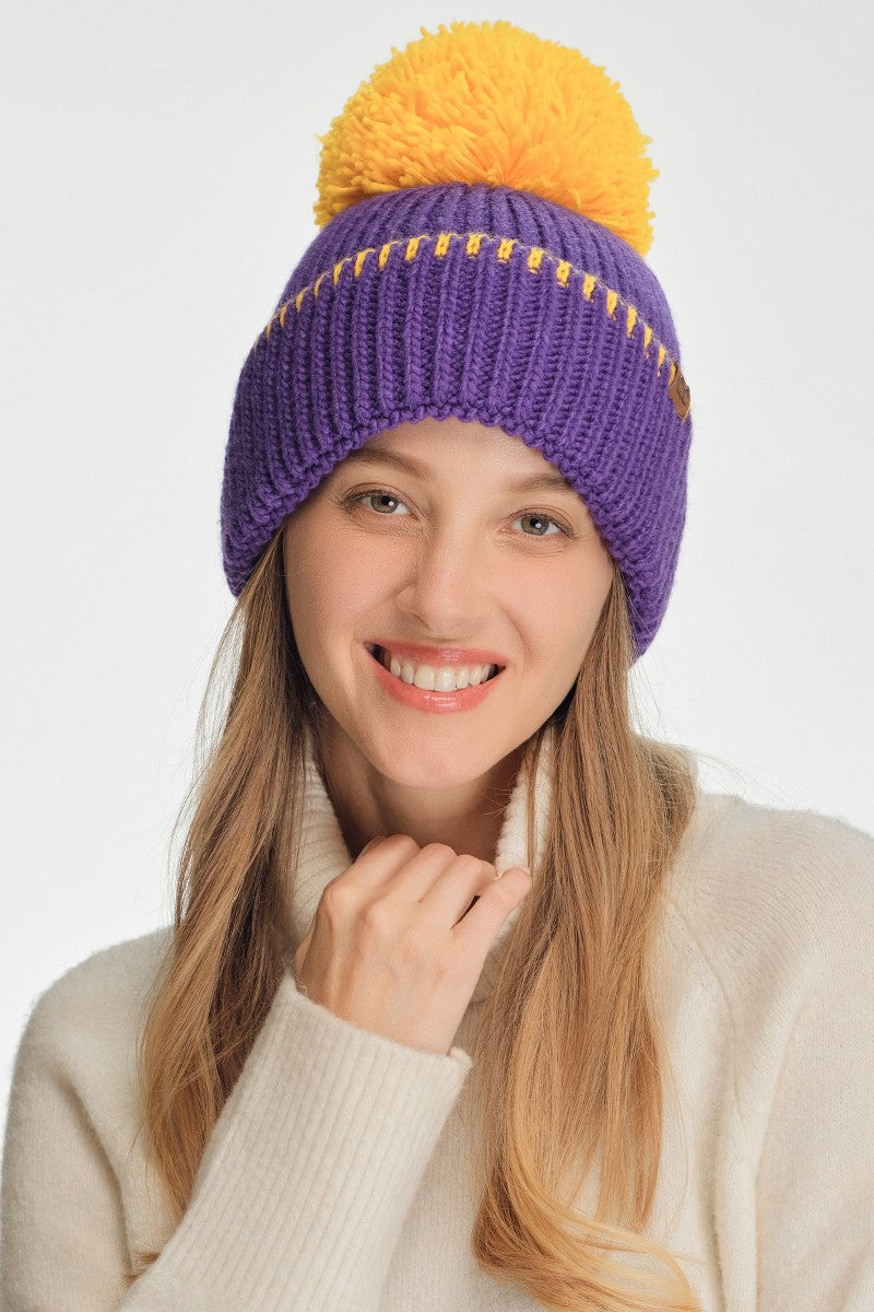 Two-tone Sport Team Beanie w/ Yarn Pom
