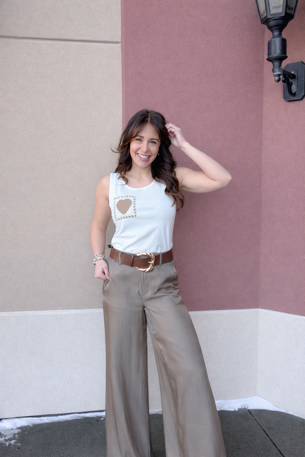Air Flow Satin Belted Wide Leg Trousers