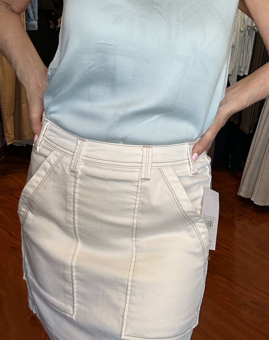 Audrey Pull On Denim Skort w/ Accent Stitching