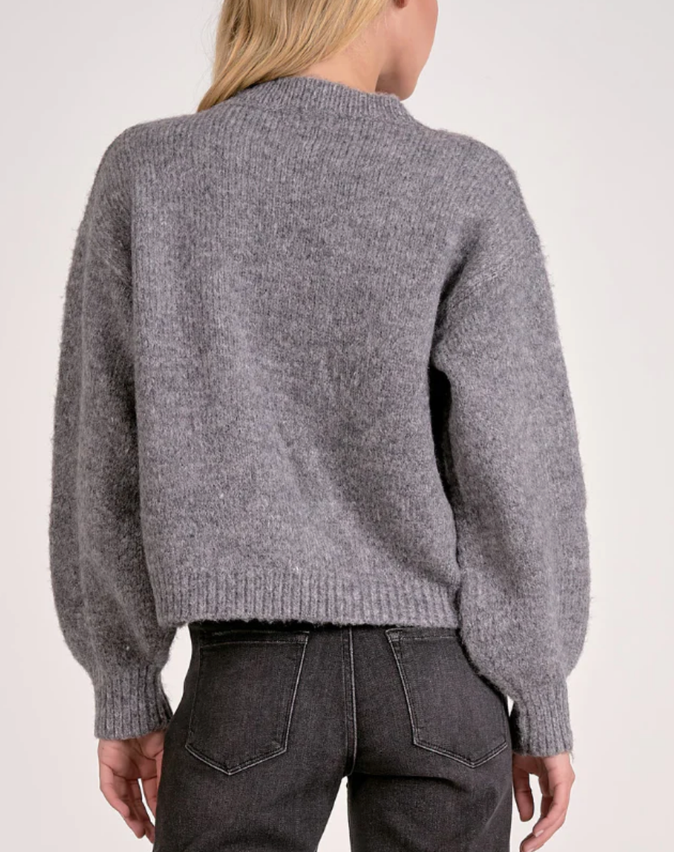 Three Quarter Dolman Sleeve Mandarin Collar Embroidered Knit Top