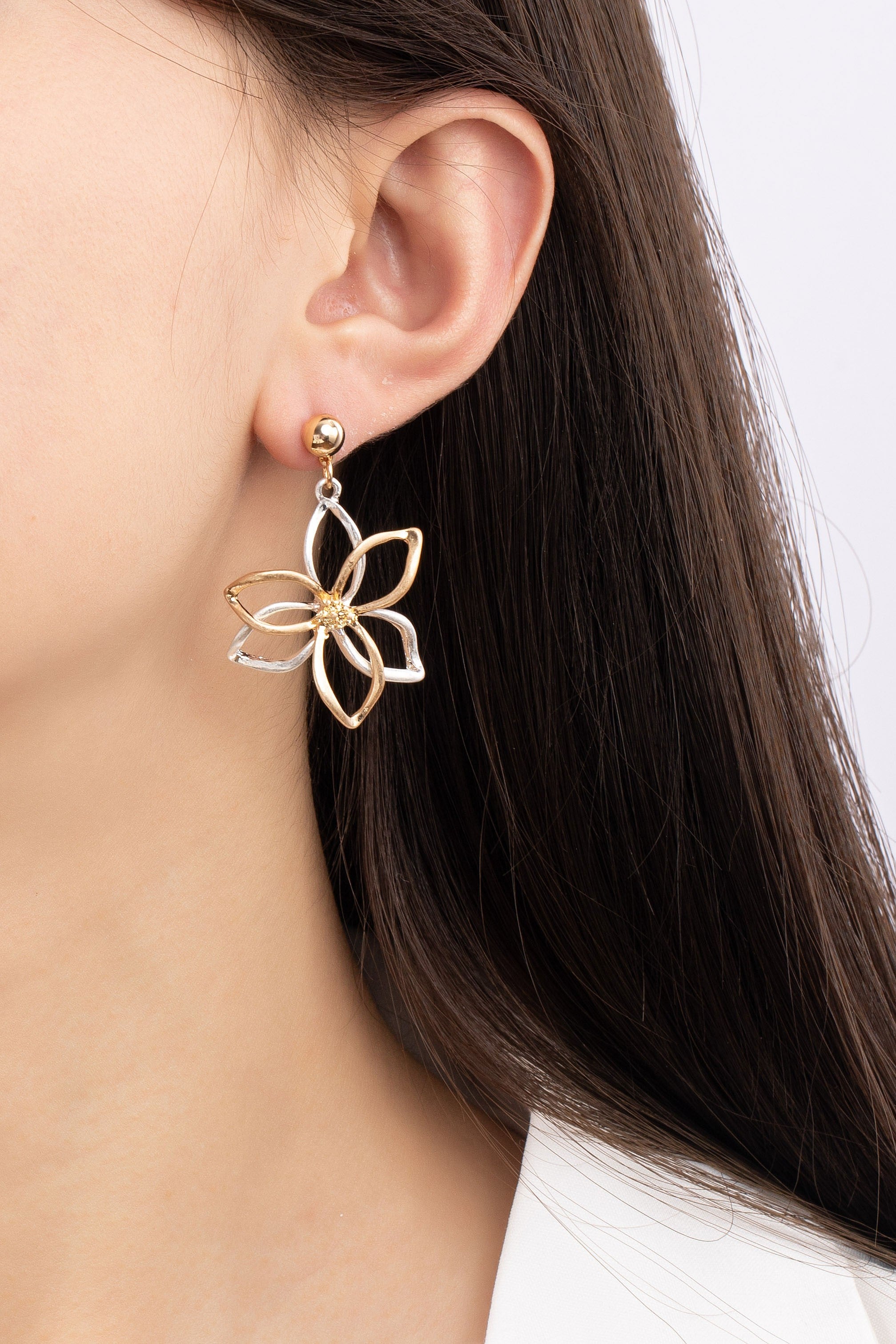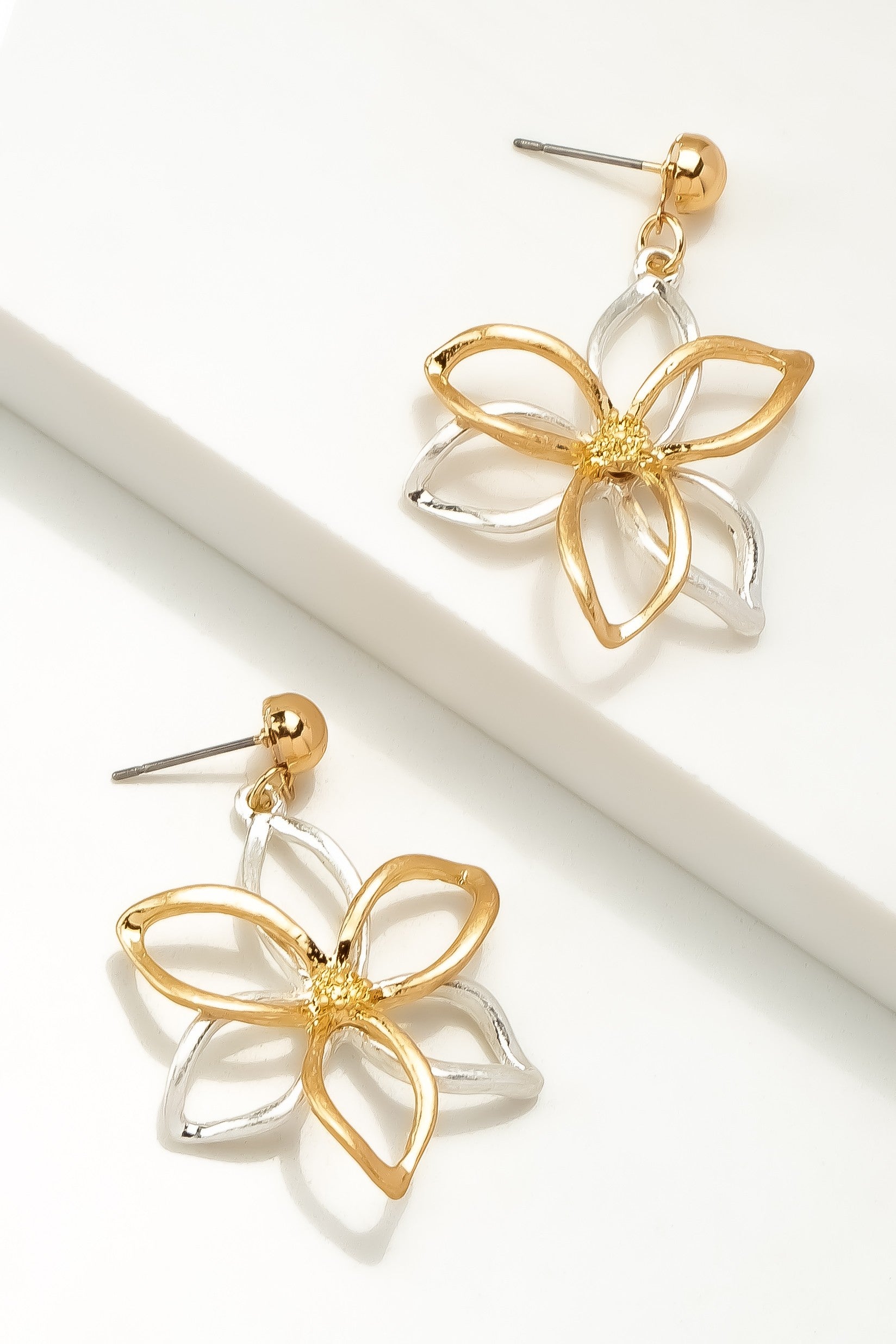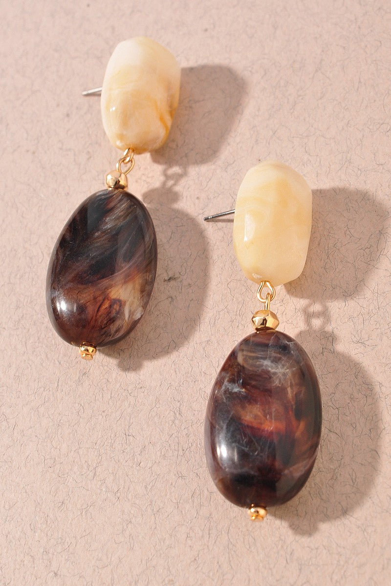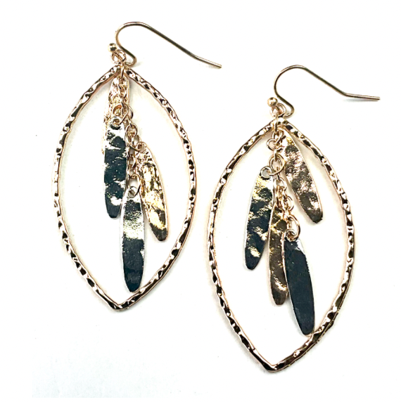 Two Tone Teardrop Hoop Earrings w/ Small Metal Dangles