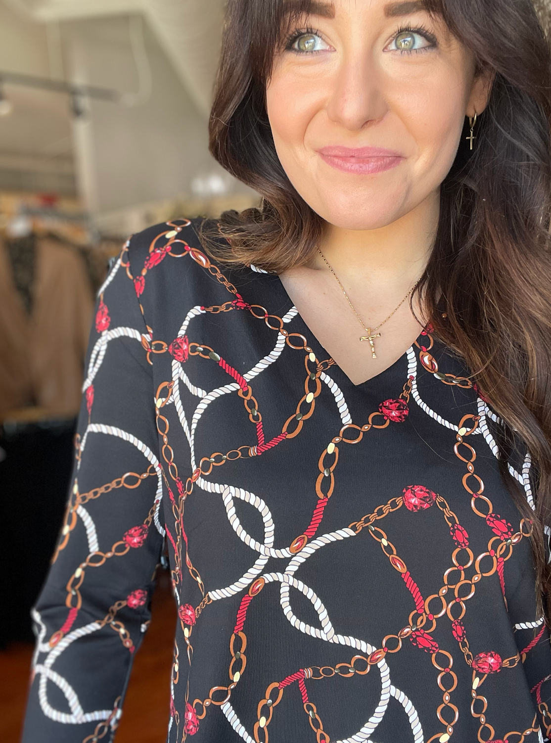UPF 50+ Chain Print V-Neck 3/4 Sleeve Top