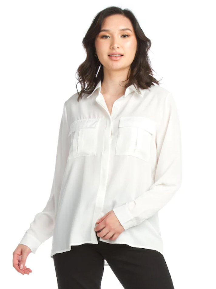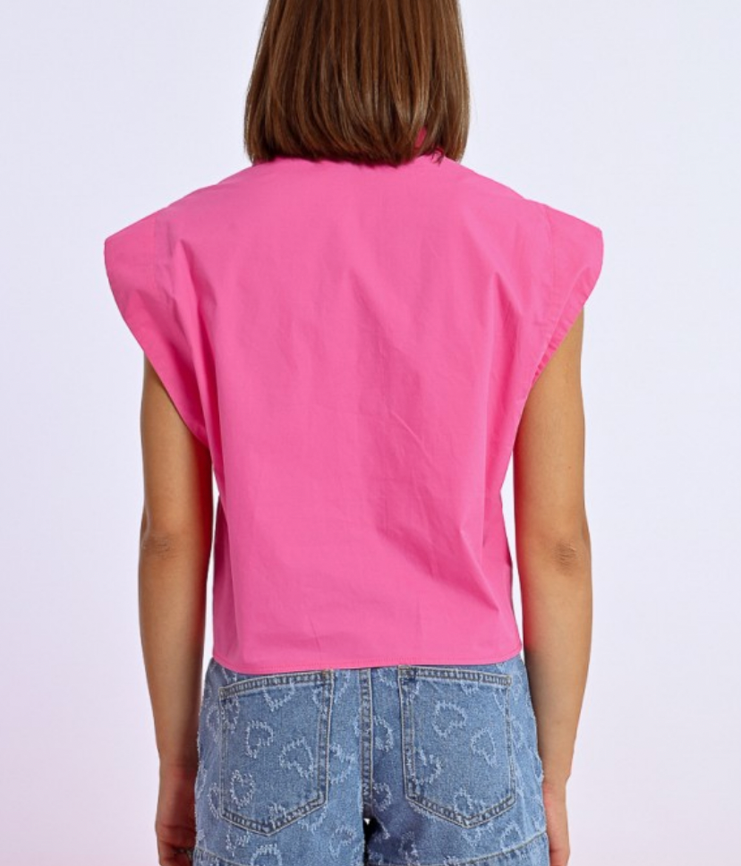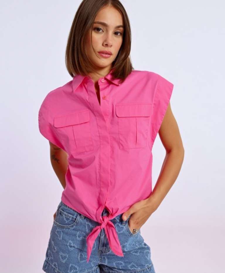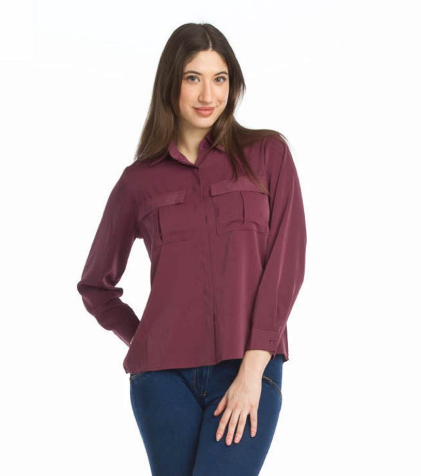 Color Block Button Front Hi-Low Top w/ Exposed Seams