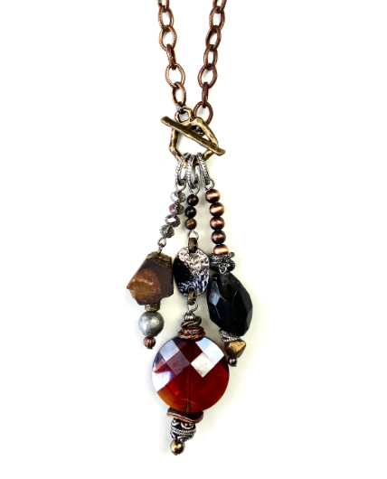 Copper Chain Necklace w/ Small Front Toggle & Mixed Dangle Beads
