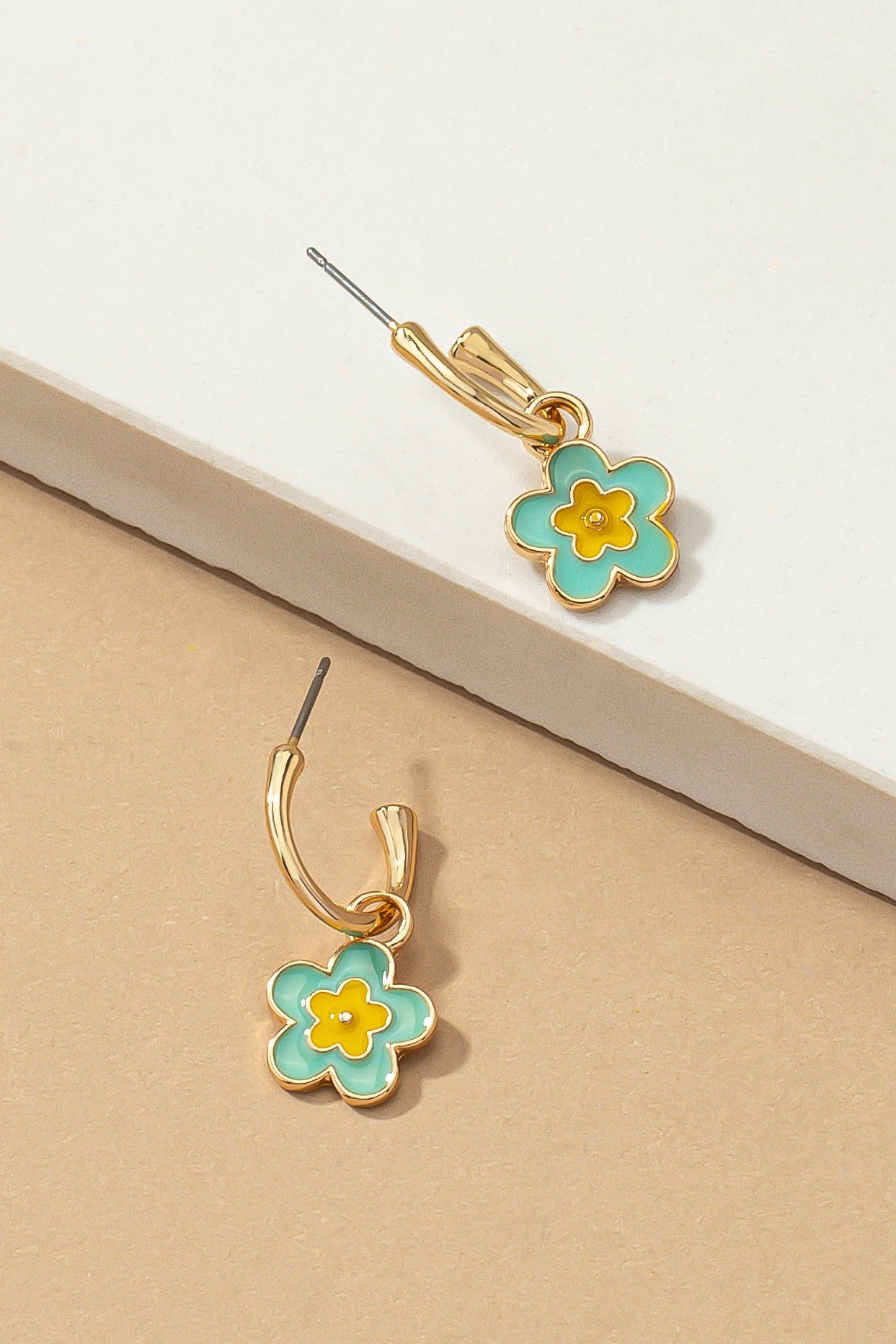 Cute small flower dangling hoop earrings