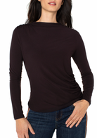 This long sleeve mock neck knit top combines cozy comfort with a playful twist. Made from soft, high-quality basic knit material, it offers a flattering fit enhanced by stylish side ruching detail.