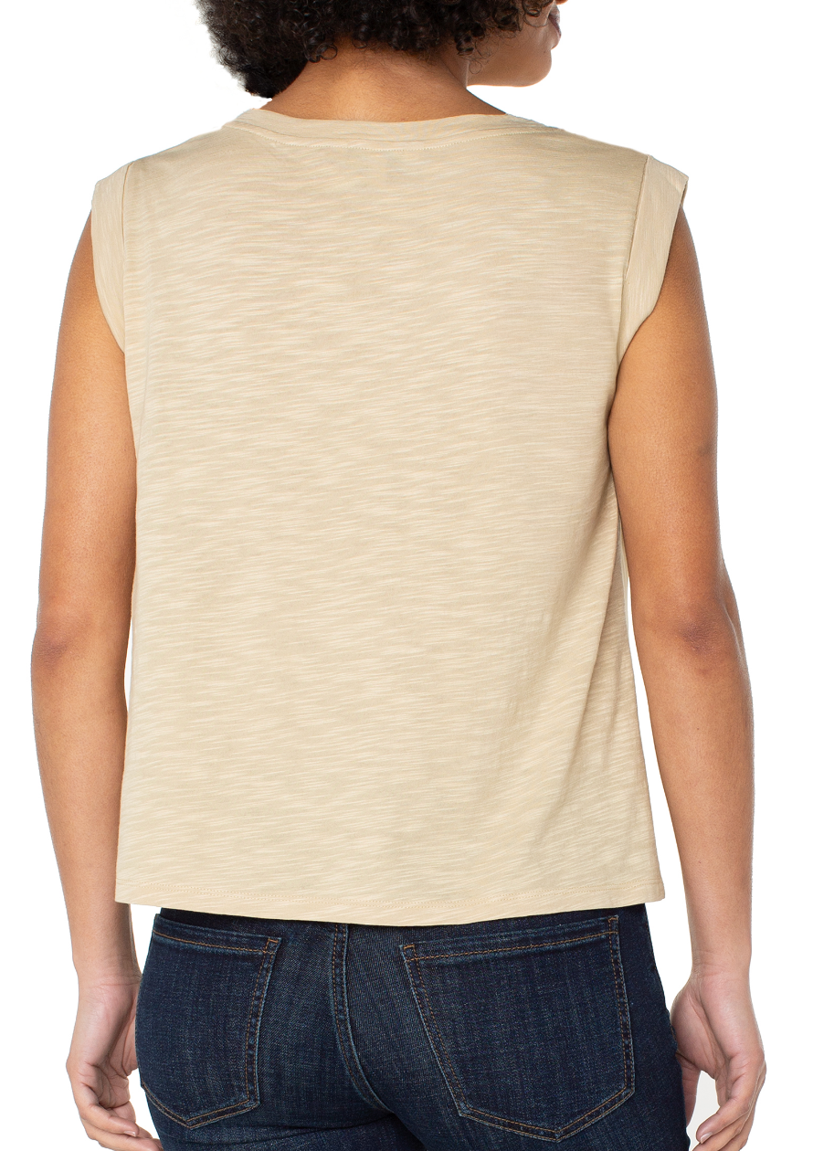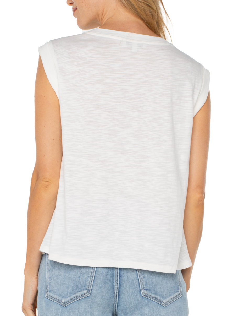 This Sleeveless Woven To Knit Top keeps things fun with a smooth woven front and a cozy knit back. Perfect for day-to-night wear, it offers both style and comfort in one playful package. Ready to mix and match with your favorite pieces!