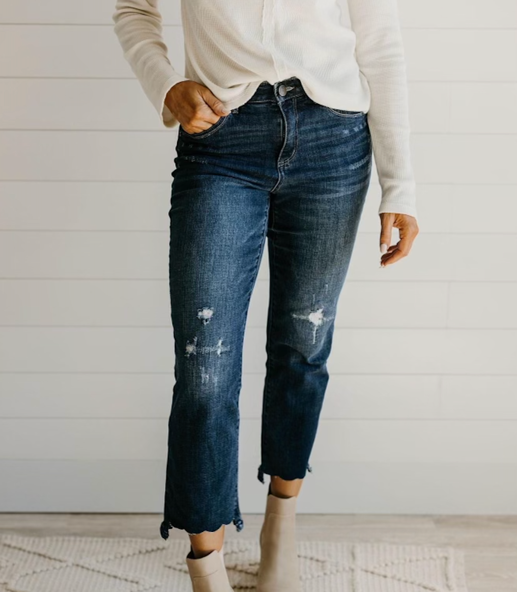 Mac and Me High Rise Barely Boot w/ Scallop Fray Chewed Hem 27-17"
