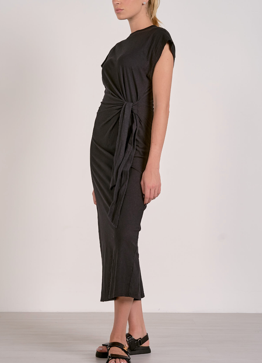 Short Sleeve Side Tie Midi Dress