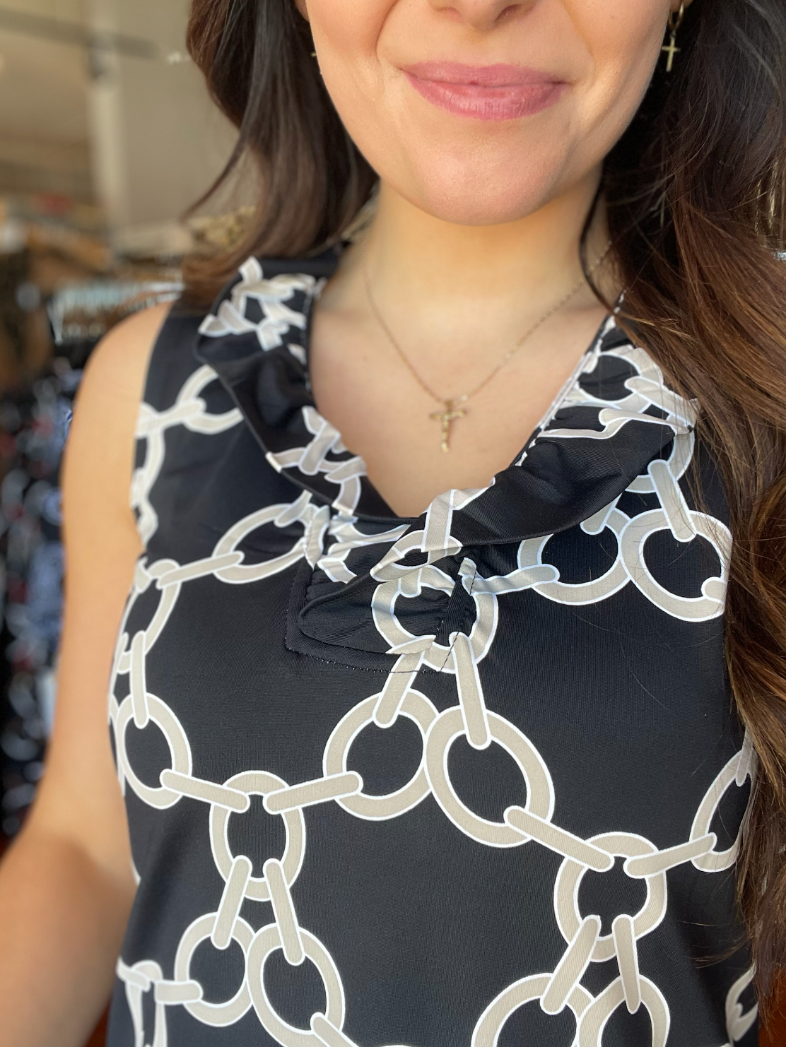UPF 50+ Chain Print Ruffle V-Neck Dress