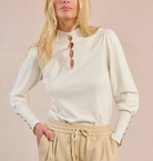Mock Neck Long Sleeve Top w/ Cut Out Decorative Detail