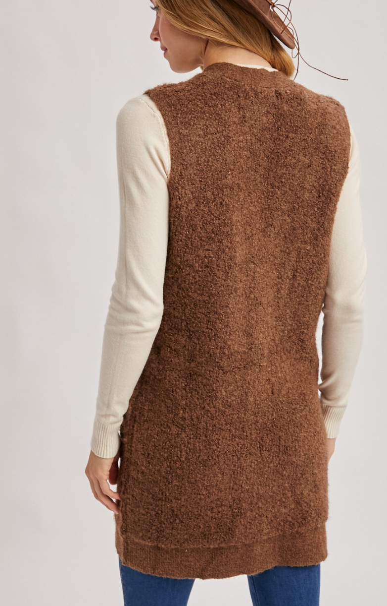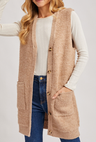 Button Down V-neck Teddy Knit Long Lined Vest