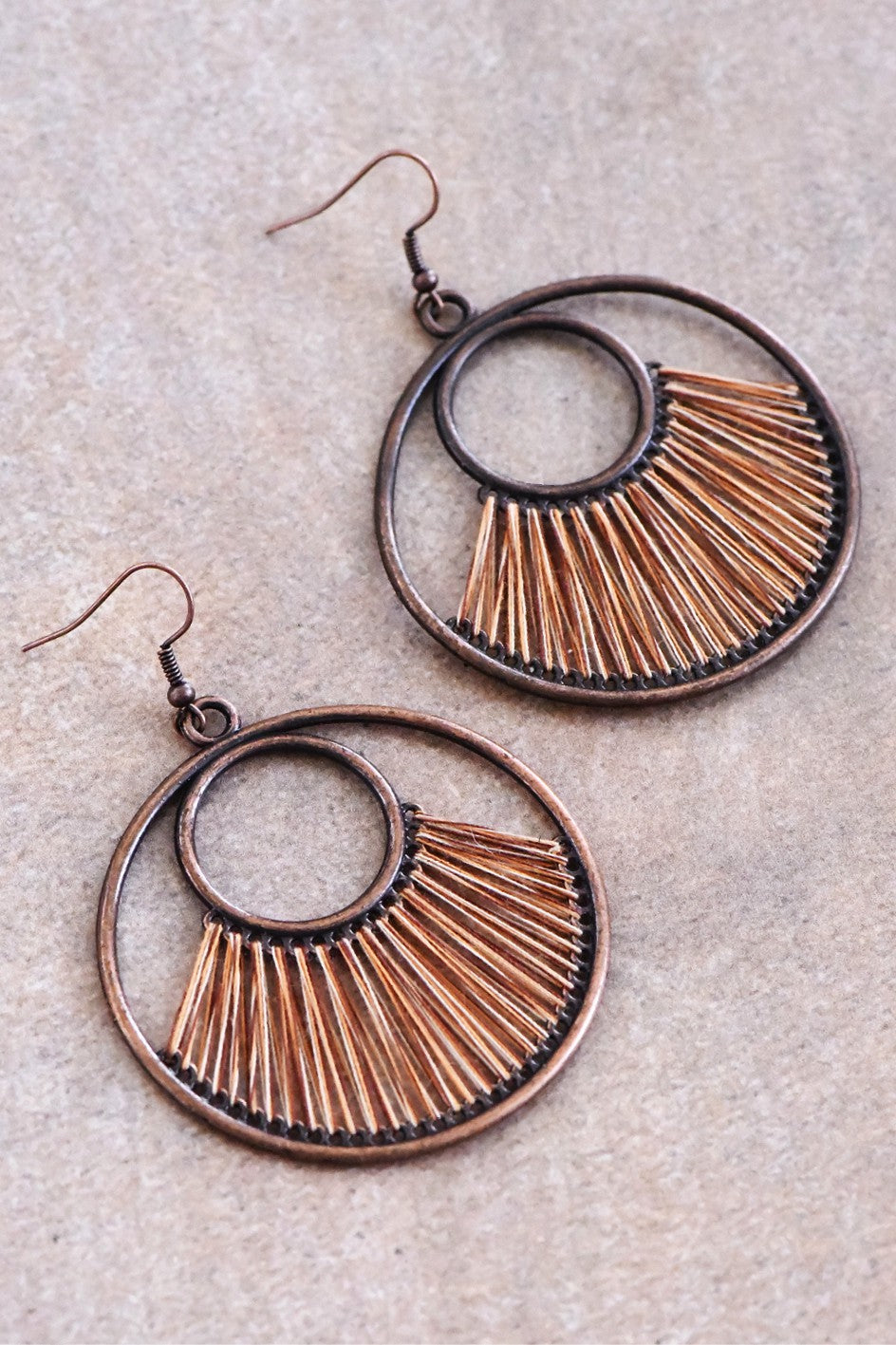 Boho Brown Threaded Circle Drop Earrings