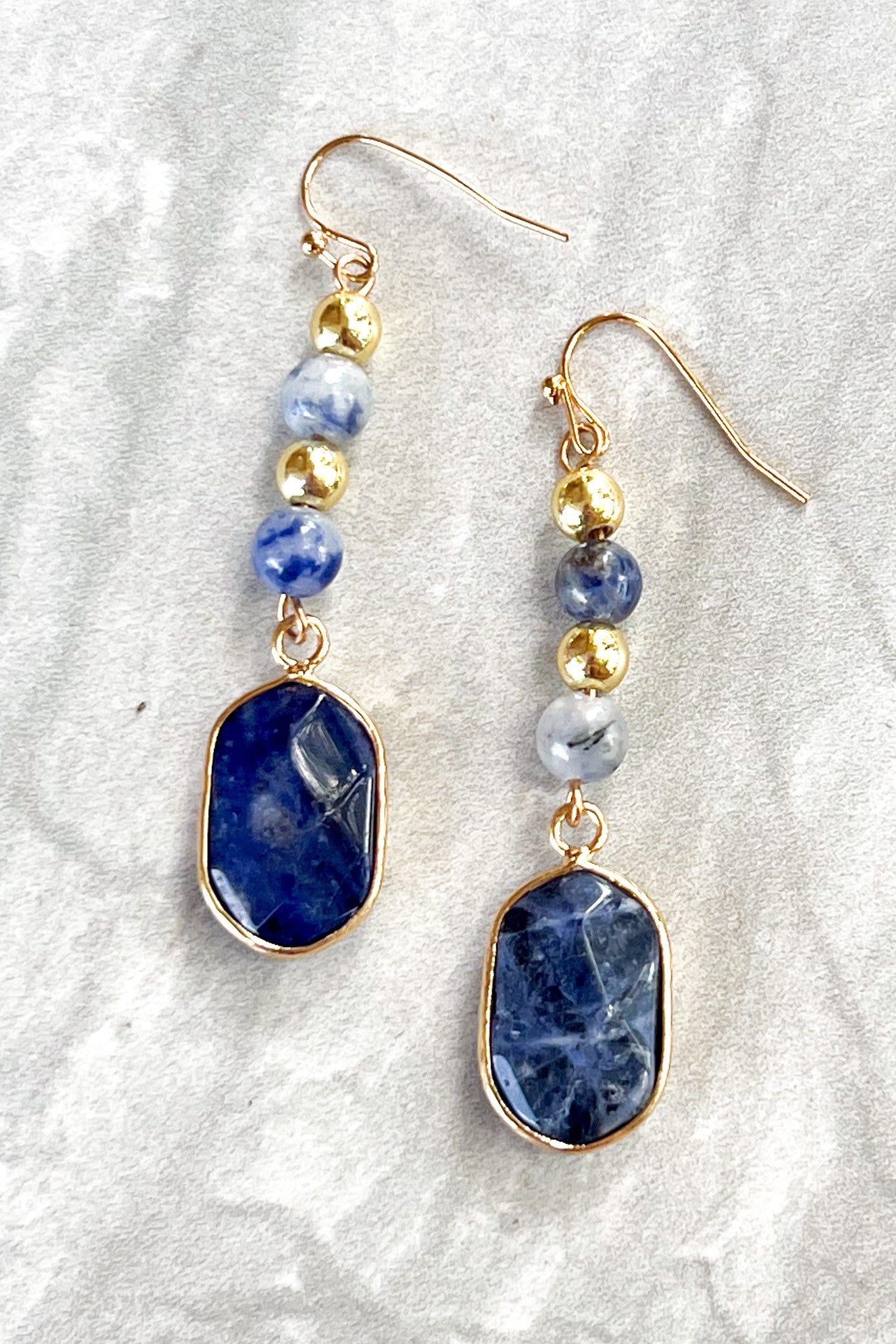 fish hook drop earrings featuring small beads and one larger teardrop stone these pair well with the Maggie Necklace! Length: approx 2""