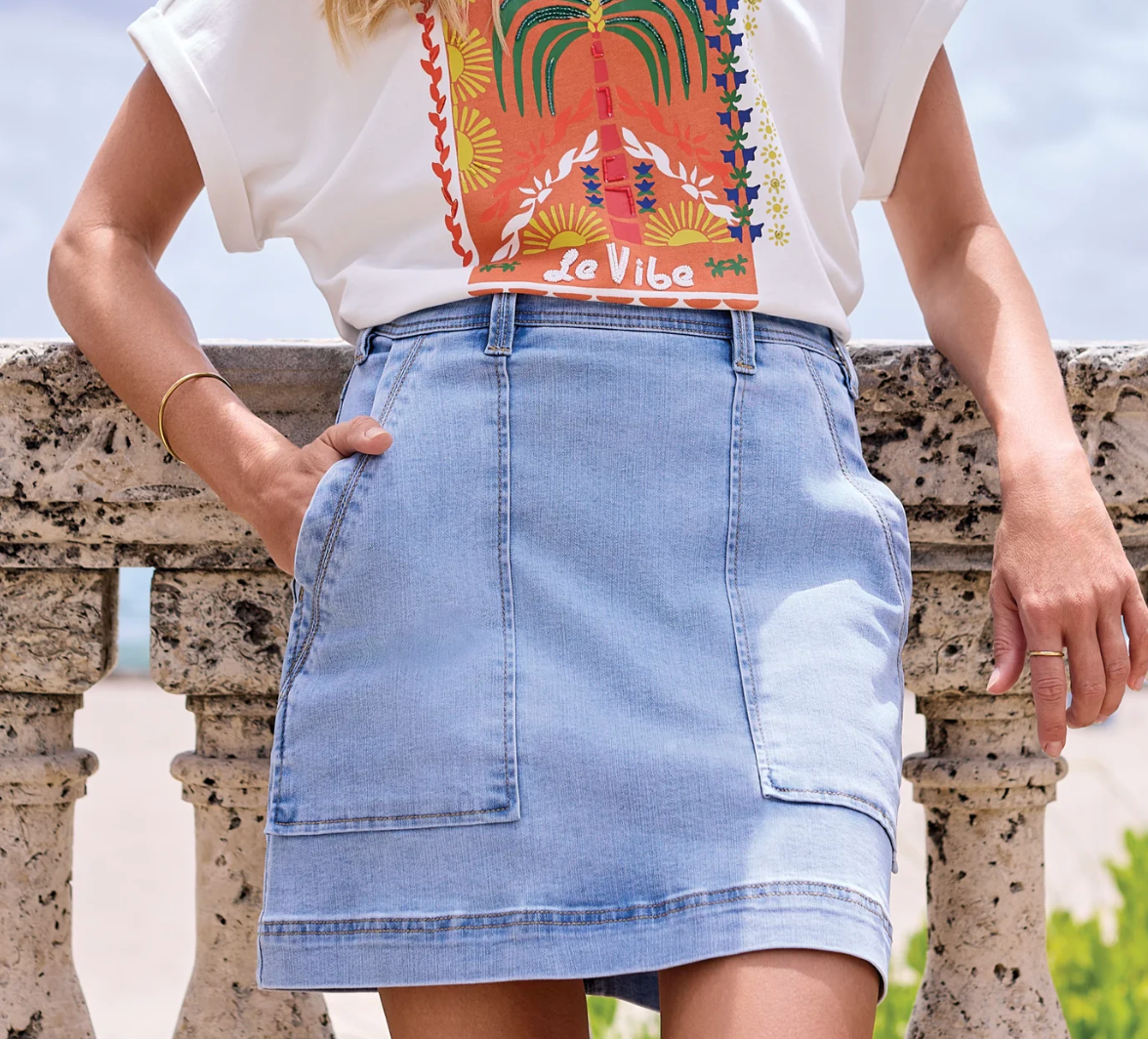 Modern meets practical in the Audrey Pull-On Denim Skort, crafted from Vision Stretch Comfort Denim for all-day comfort and flexibility. With functional patch pockets and a classic straight fit, this skort delivers the look of a skirt with the freedom of shorts. The pull-on waistband ensures easy wear, while seasonal washes bring fresh style. Whether active or at leisure, enjoy effortless movement and a premium feel for any occasion.