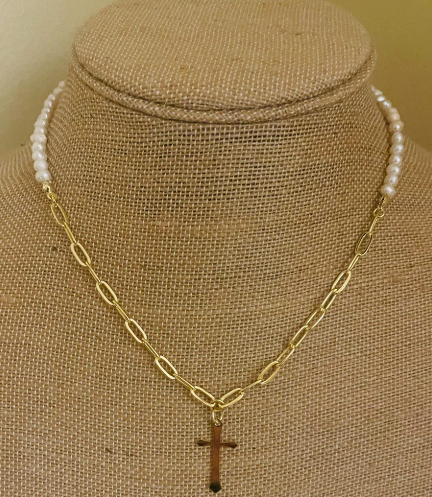 Mac and Me Jewelry Bella Cross Mixed Media Necklace