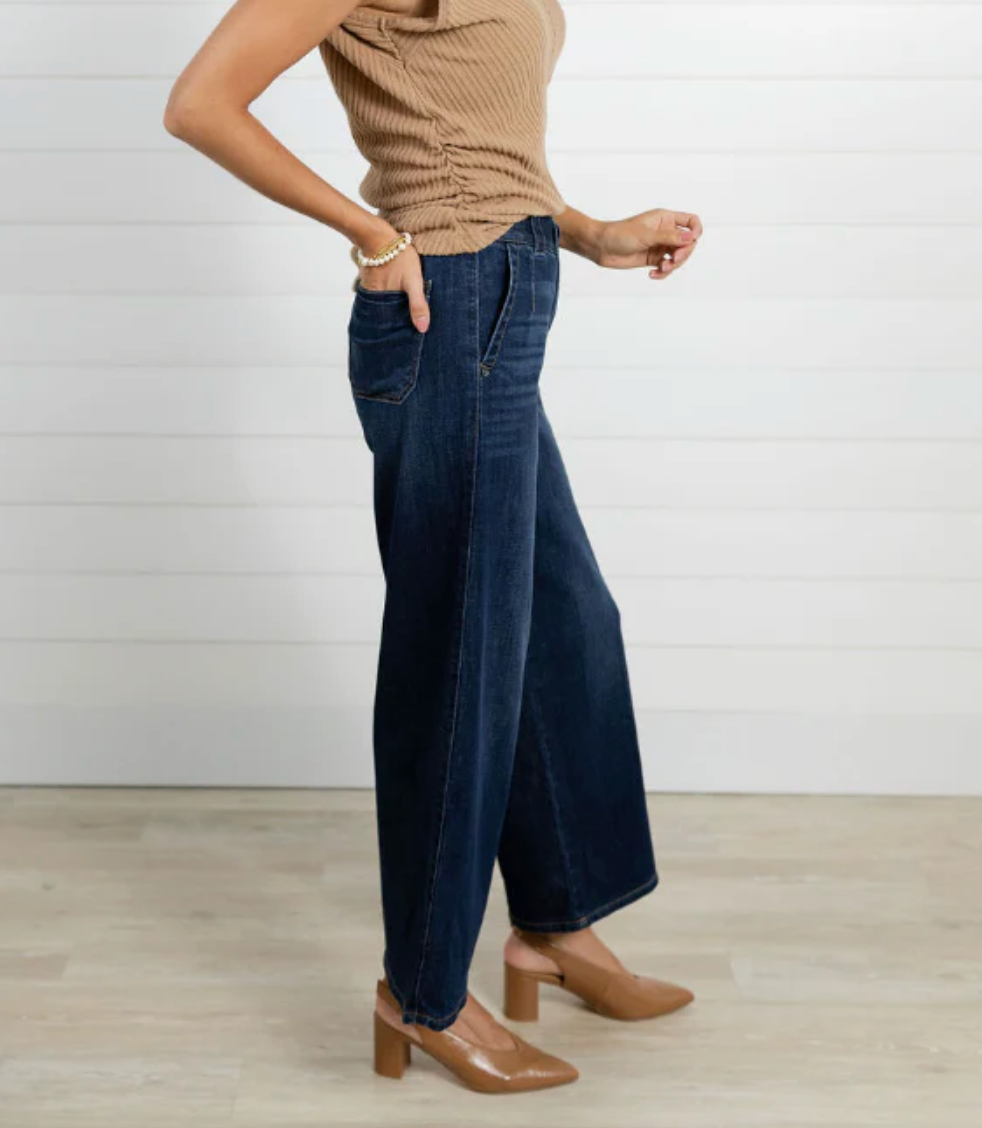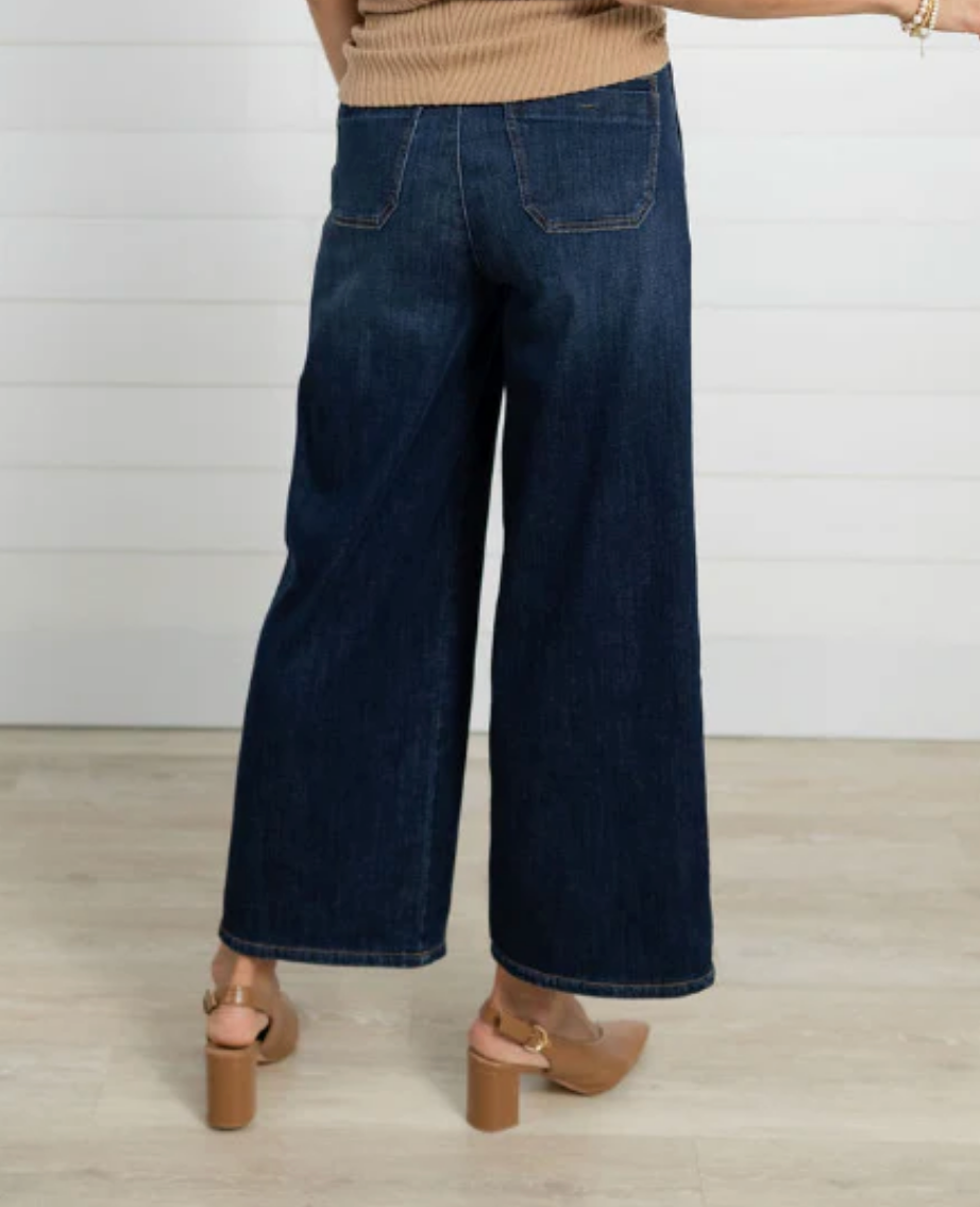 These wide leg beauties bring the drama in the best way, with a chic trouser fit and the prettiest little tulip hem that flutters just right. The dark wash keeps things sleek and sophisticated, while our famous Mac and Me technology works behind the seams to hold you in and lift you up. Oh—and that sewn-in tag? It says You Are So Loved, because you are. 💕