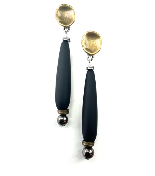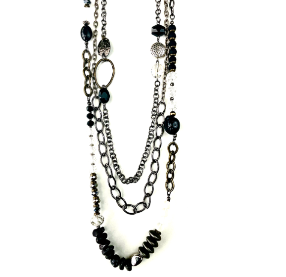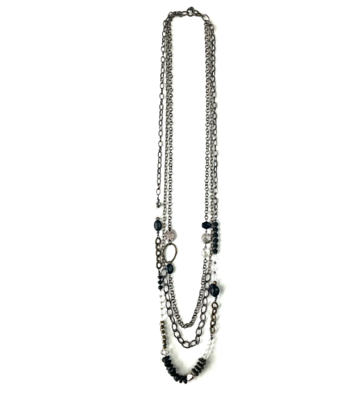 Triple Strand Chain Necklace w/ Black & Grey Beads