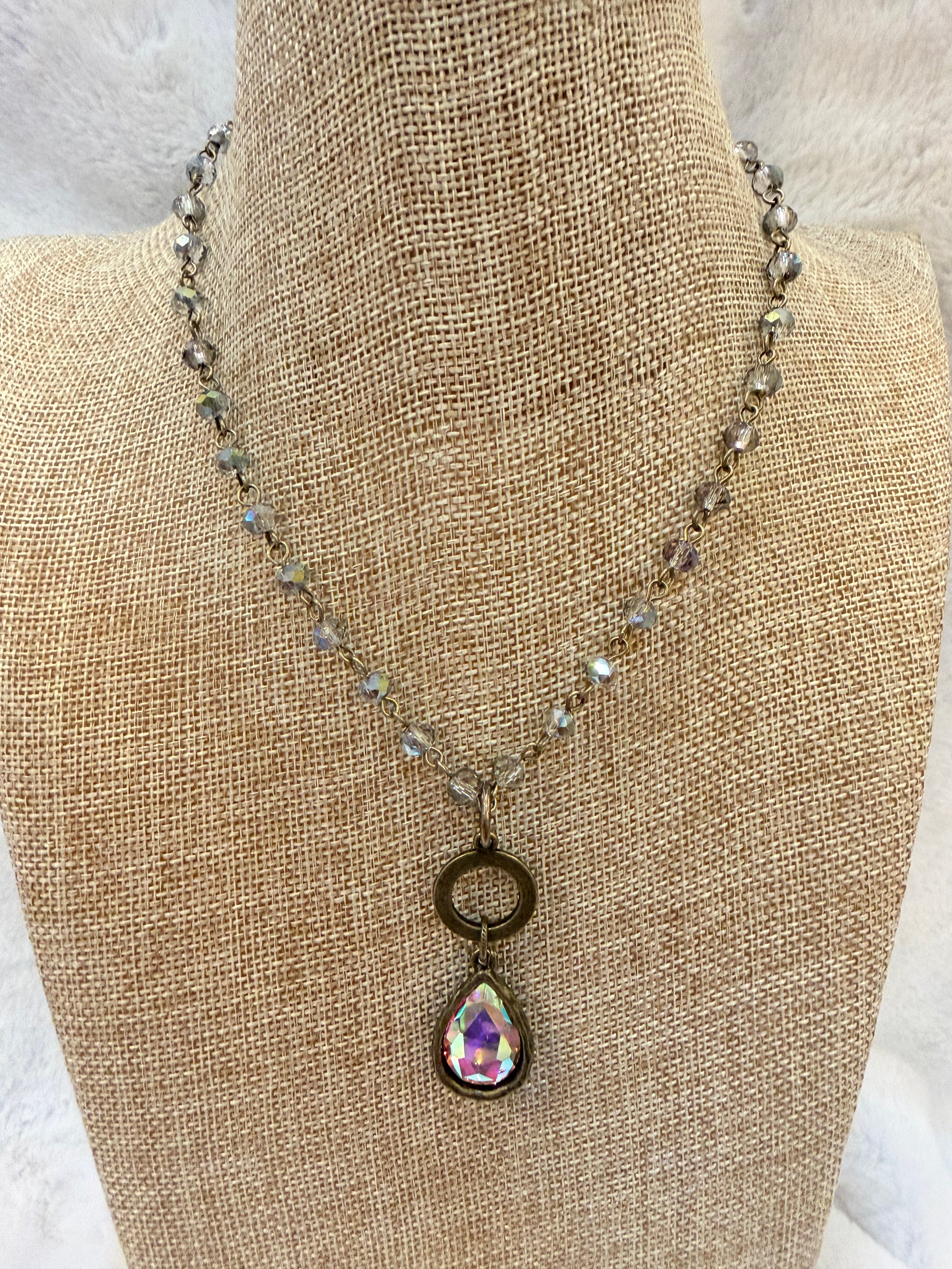 Soldered Short Necklace w/ Aurora Borealis Teardrop Crystal