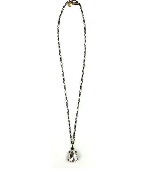 Fancy Short Chain Necklace w/ Framed Crystal Teardrop