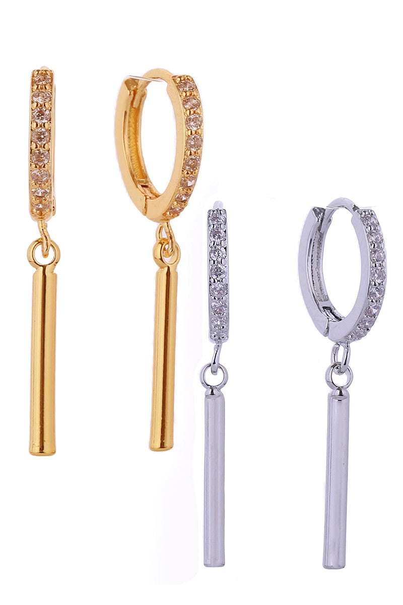 14k Dipped Cz Hoop Thin Bar Drop Huggie Earrings