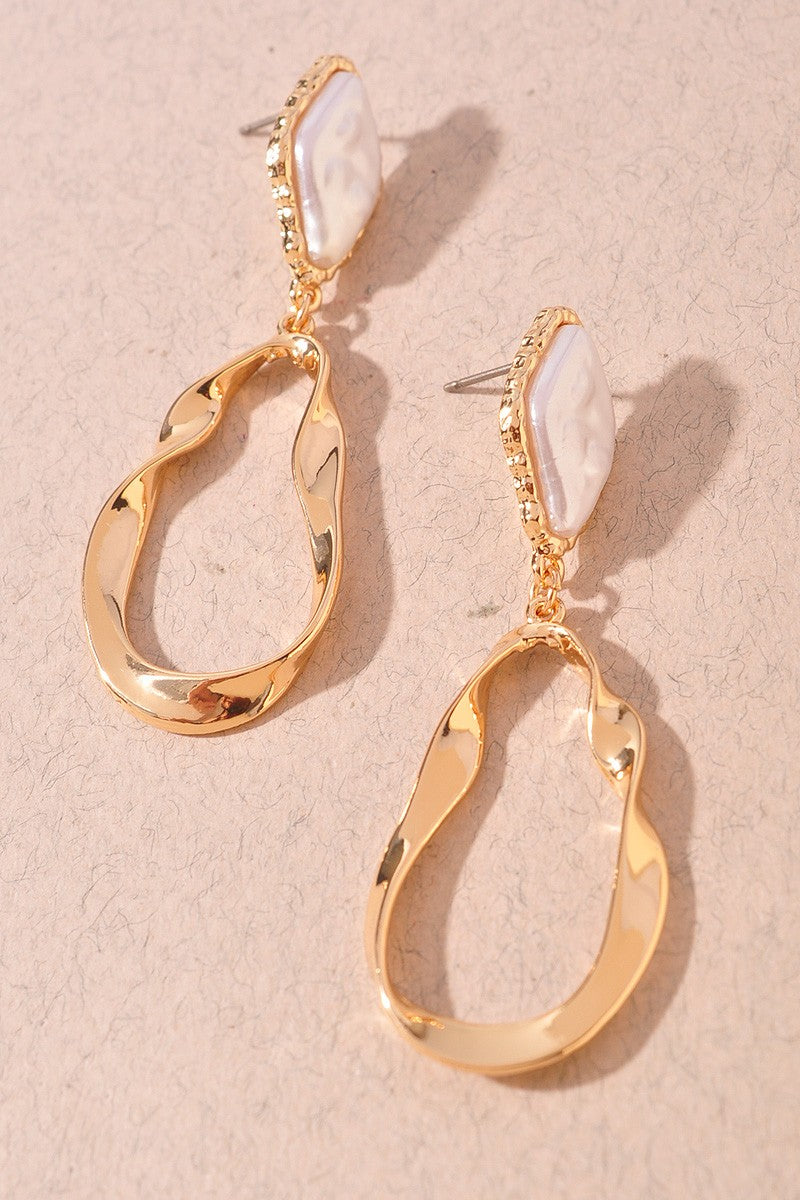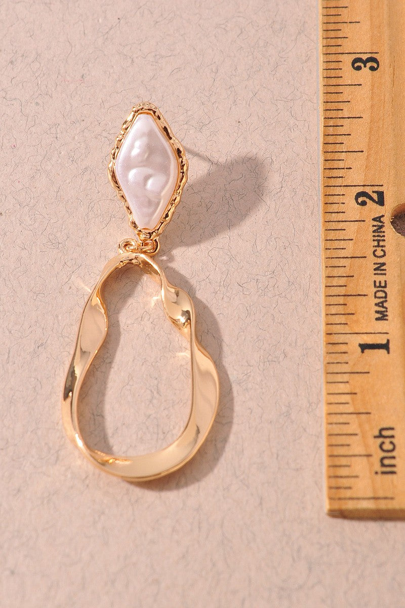 Pearl Detail Abstract Gold Dangle Earrings