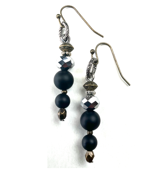 Black Beaded Linear Earrings