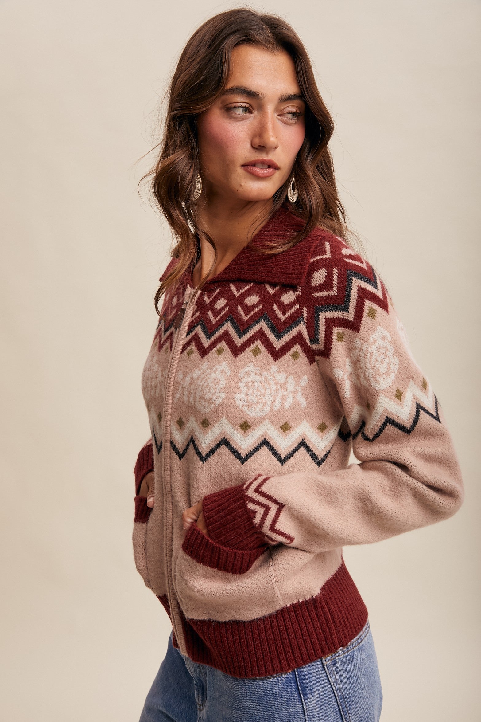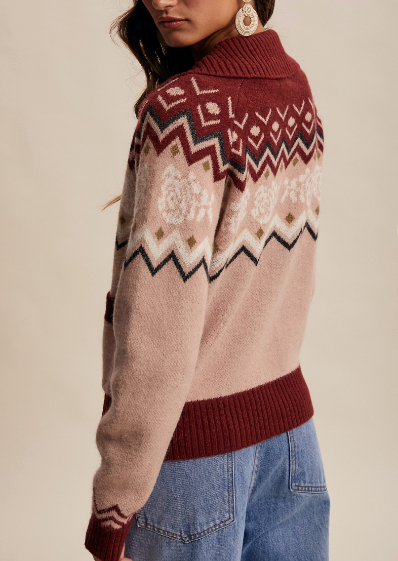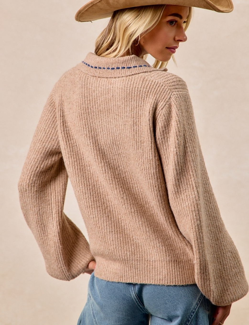 Knit Sweater w/ Neck Cutout & Rhinestone Trim