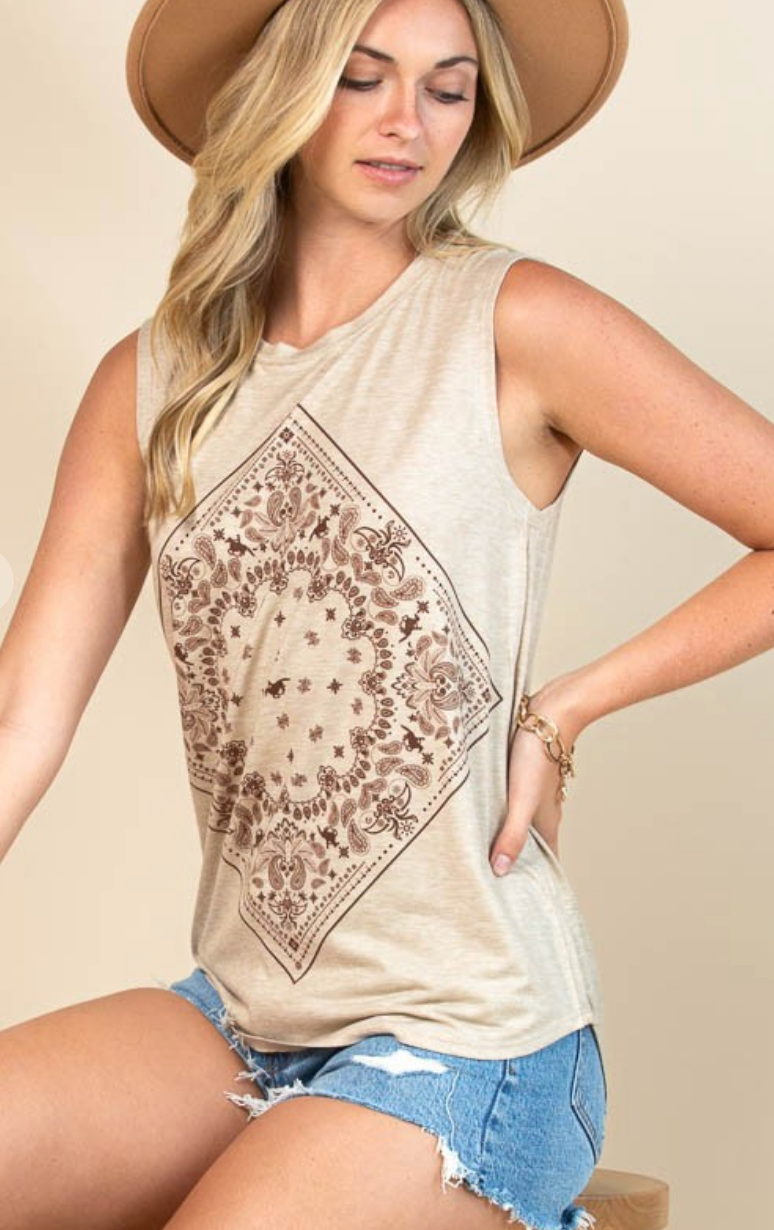 Bandana Graphic Relaxed Fit Sleeveless Top