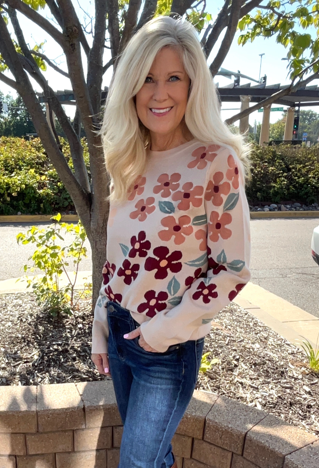 Wrap yourself in joy with the Daisy Jacquard Sweater, available in cheerful peach, teal, and burgundy. Its lively colors and cozy knit bring a playful touch to any outfit, brightening your day with every wear. Perfect for those who love comfort and a splash of happiness in their wardrobe.