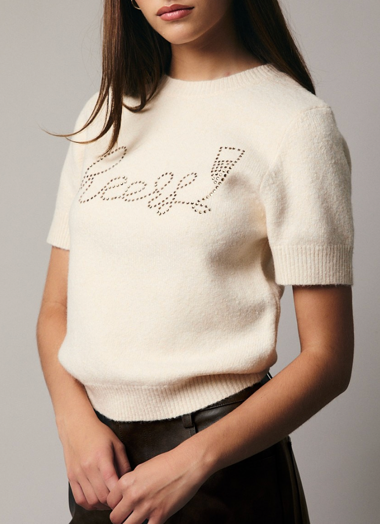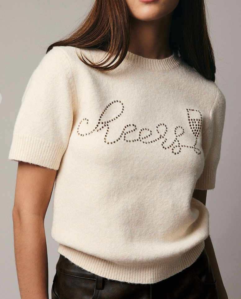 Round Neck Rhinestone"Cheers" Lettering Sweater