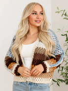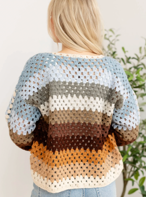 Wrap yourself in cozy charm with our Crochet Multi Stripe Cardigan, crafted in chunky knit for ultimate warmth. Featuring all the vibrant fall colors, it’s perfect for layering on crisp autumn days. Its playful stripes add a fun pop to any outfit, making chilly weather your new favorite season.