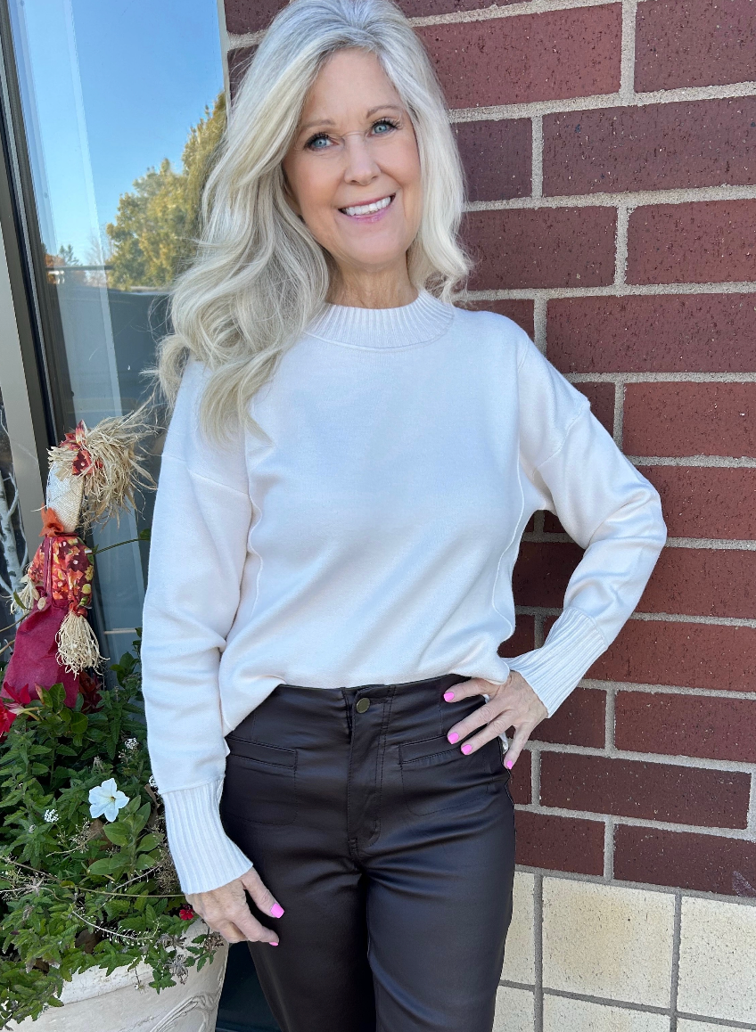 Mock Neck Sweater w/ Side Slits