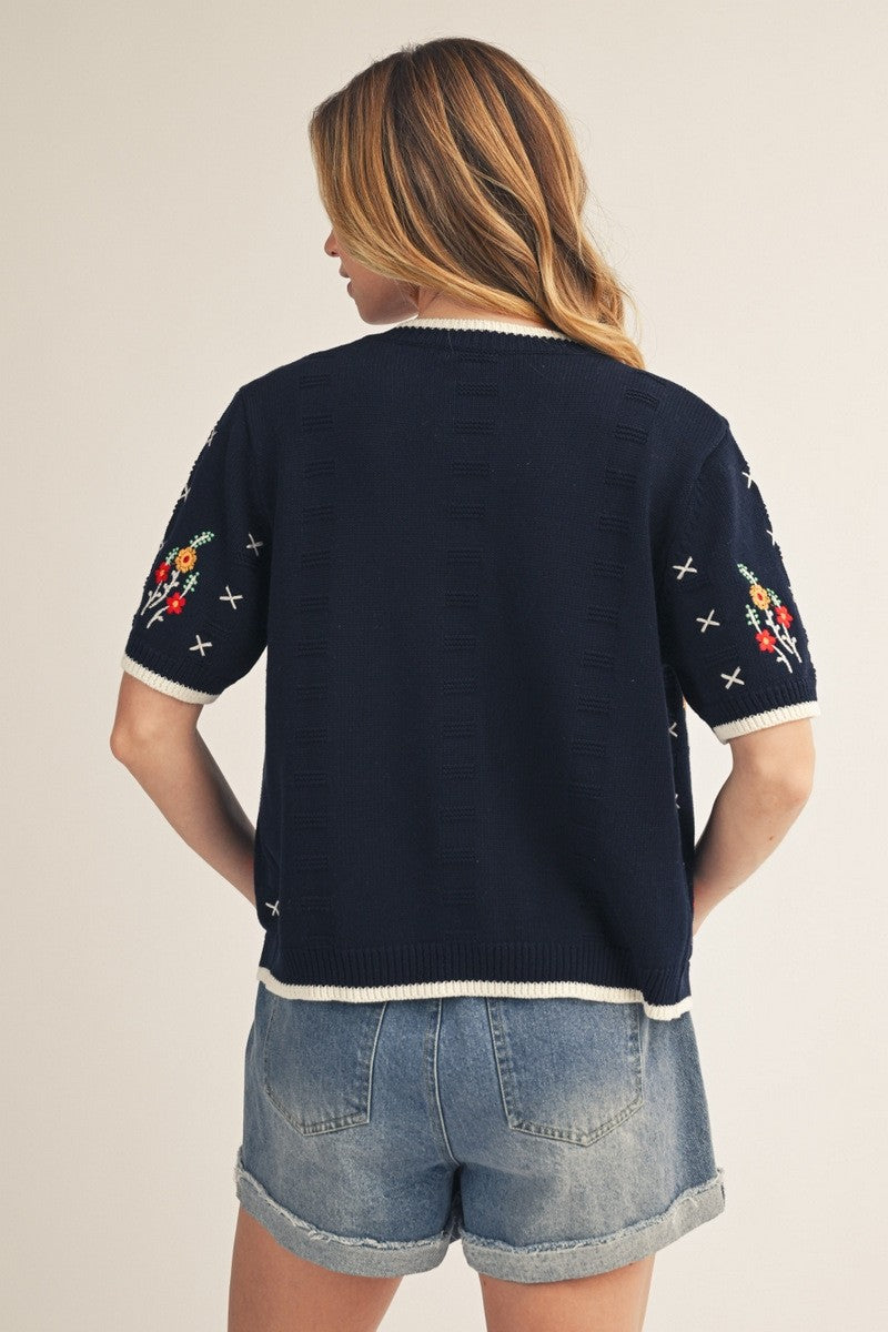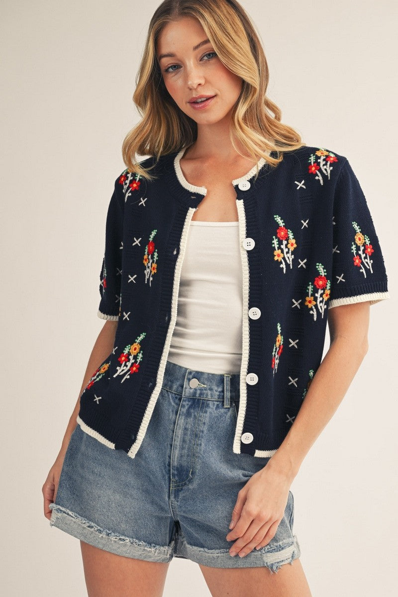 Floral Embroidered Sweater Cardigan