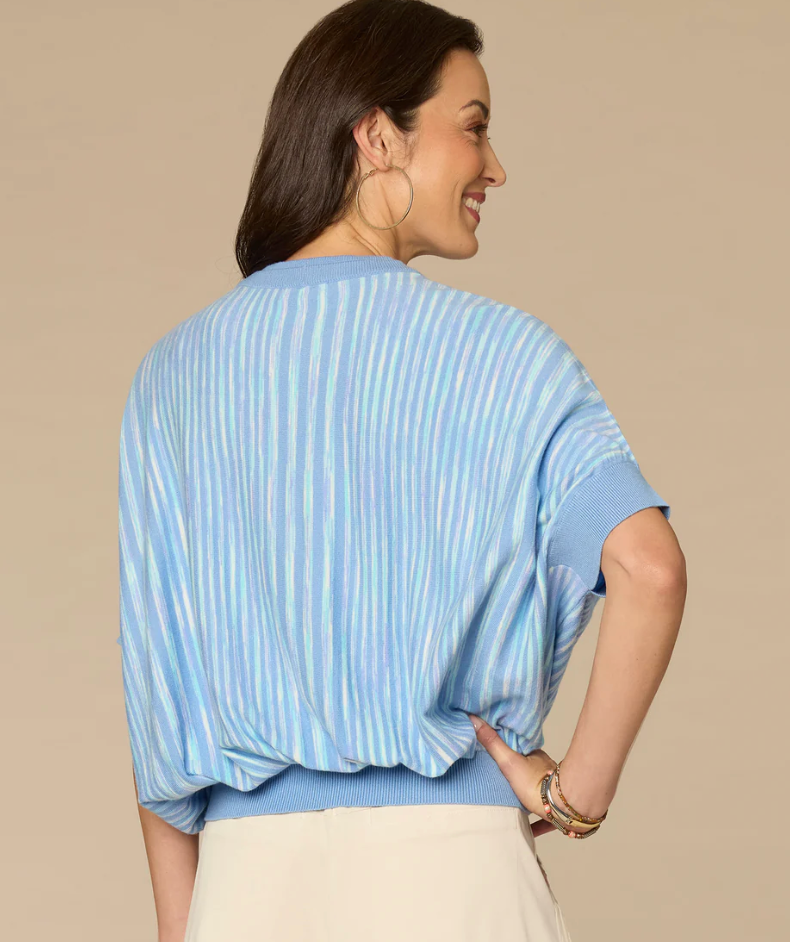 Short Dolman Sleeve Double Round Neck Two Tone Space Dye Sweater