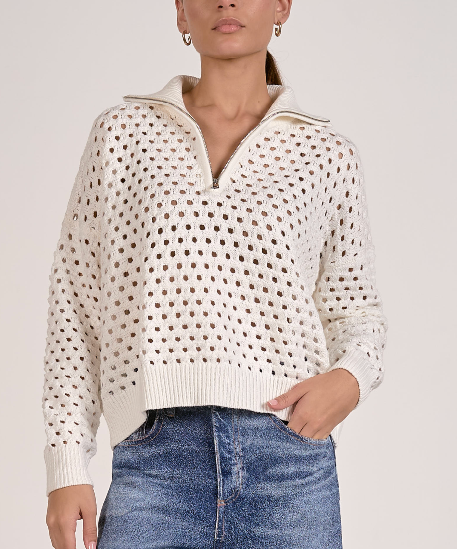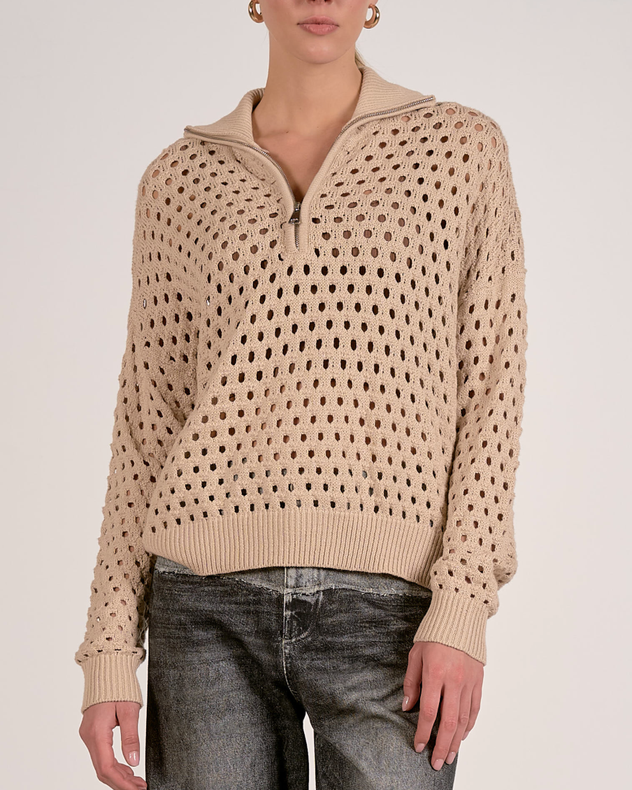 Open Weave Half Zip Sweater