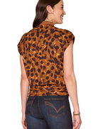 EXTENDED CAP SLEEVE MOCK NECK BANDED HEM PRINTED KNIT TOP