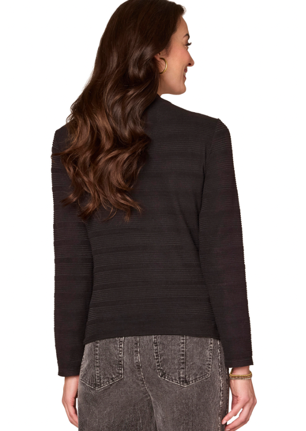 LONG SLEEVE MOCK NECK ASYMMETRICAL SIDE RUCHING KNIT TOP