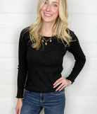 The Mac and Me Waffle Rib Long Sleeve Top is your new go-to base layer for every season. With its subtle lettuce-edge hem for that perfectly undone vibe, it’s the definition of cozy-meets-cool. The buttery soft, super stretchy fabric feels dreamy against your skin — whether you’re layering it up or wearing it solo.