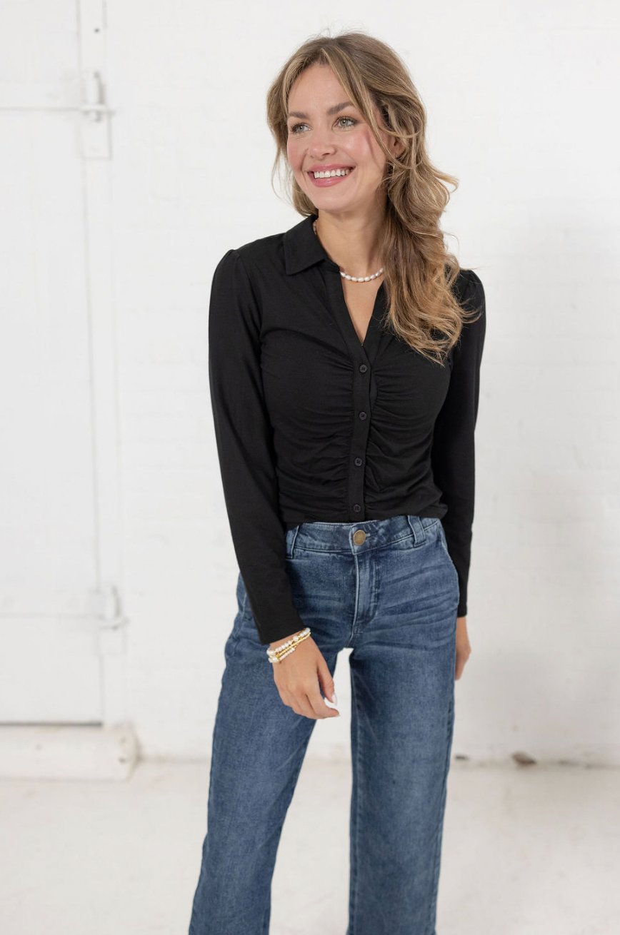 Mac and Me Ruched Button Front Long Sleeve