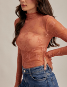 Mock Neck Lace Long Sleeve Top