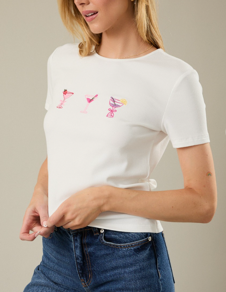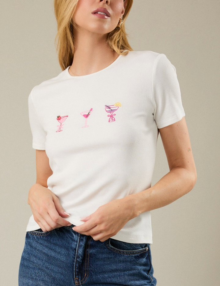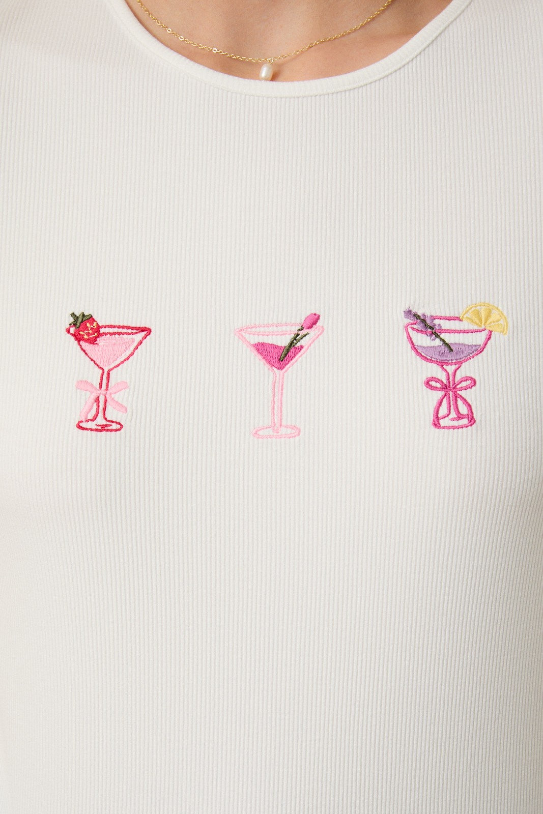Round Neck Cocktail Embroidered Ribbed Top