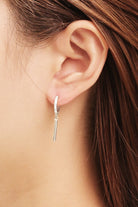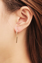 14K Dipped CZ Hoop Thin Bar Drop Huggie Earrings - 14k Gold Dipped - Made in South Korea - Hypoallergenic Earrings - Brass Base - Lead, Cadmium, and Nickel Tested **Size: Approx. 1.18" Drop Length**