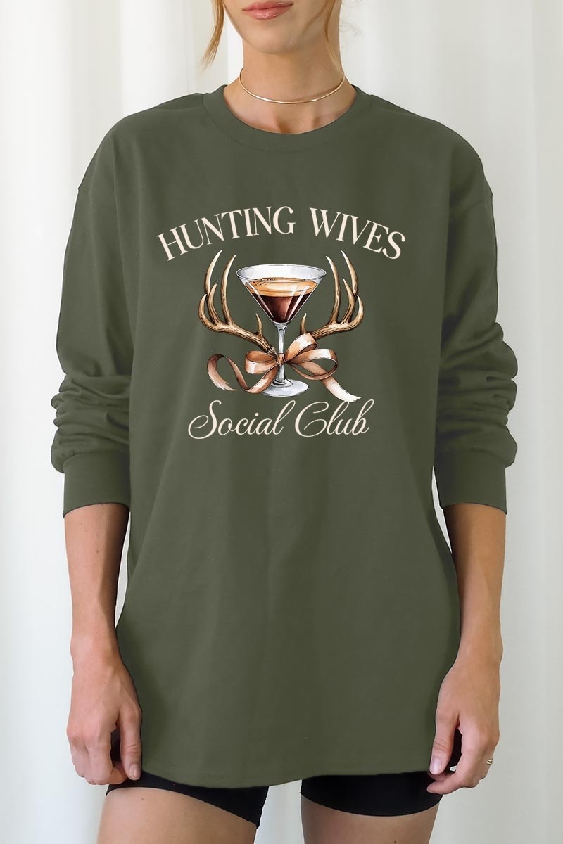 Hunting wives shirt, social club tee, antler martini shirt, country girls tee, hunting lifestyle top, outdoorswoman shirt, southern style tee, camo hunting wives Graphic Long Sleeve Tee. *Gildan Unisex Ultra Cotton Long Sleeve Tee*