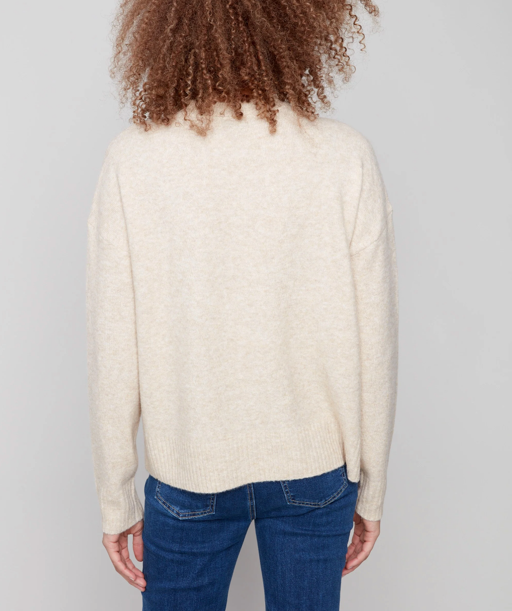 Placed Jacquard Long Sleeves Crew Neck Sweater