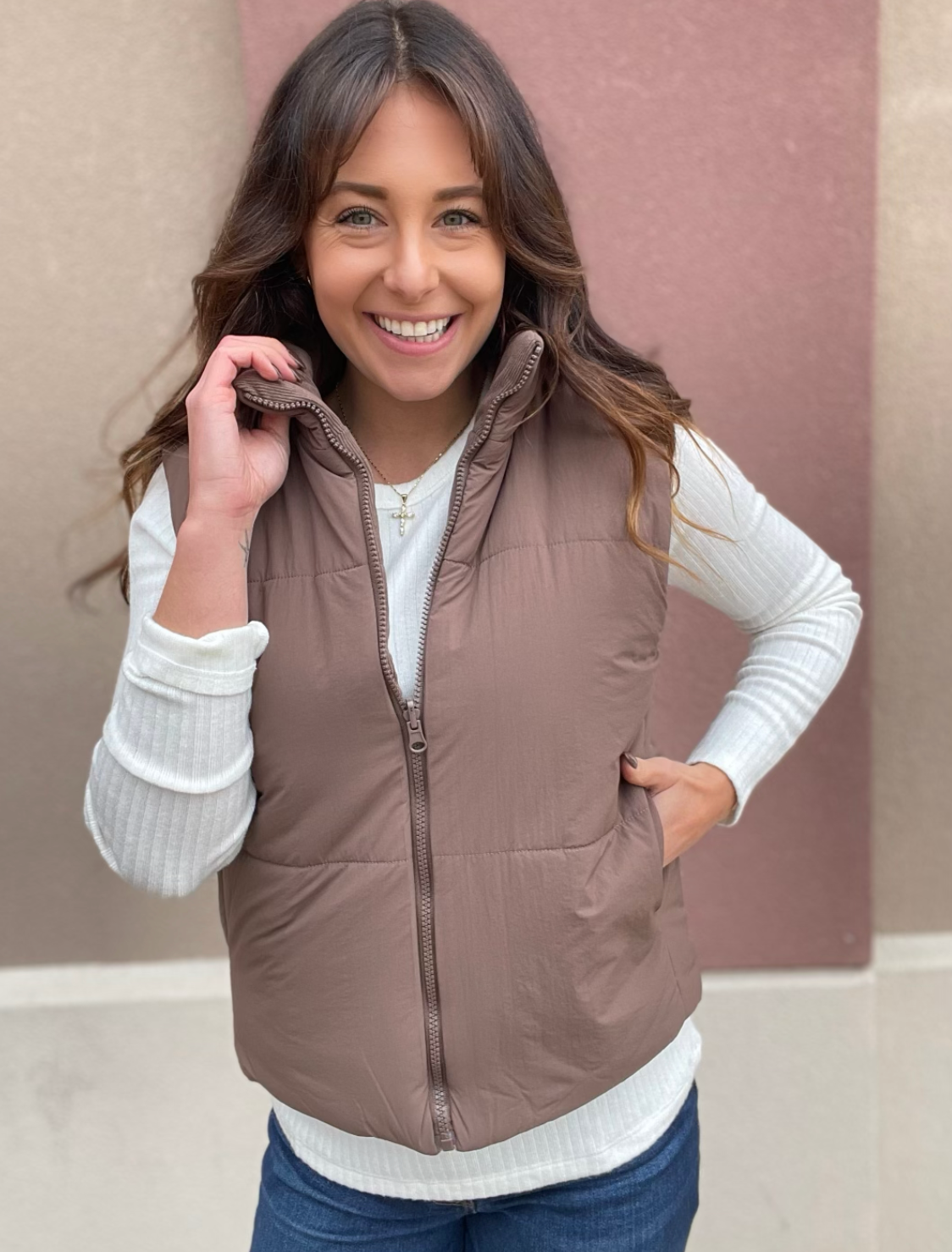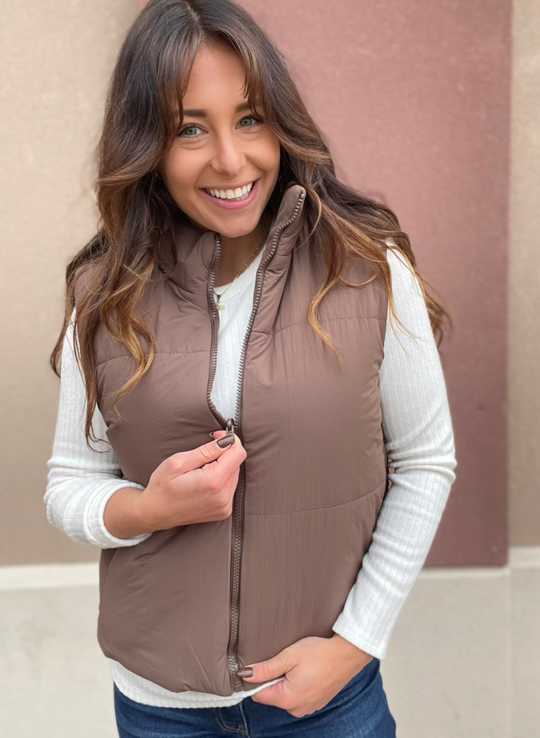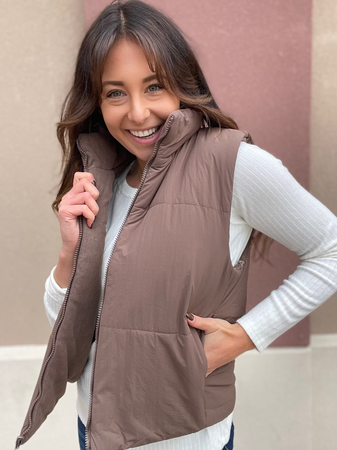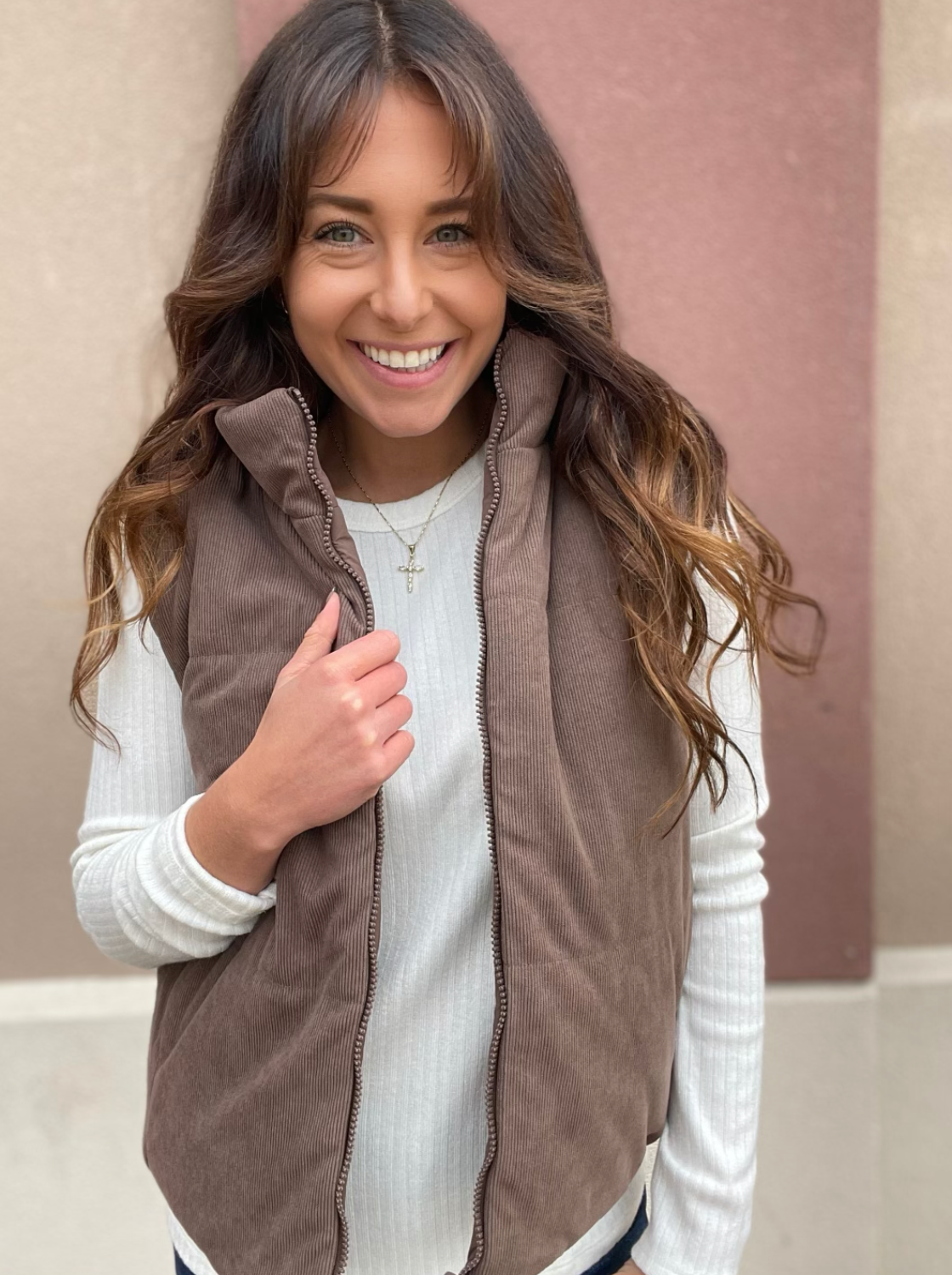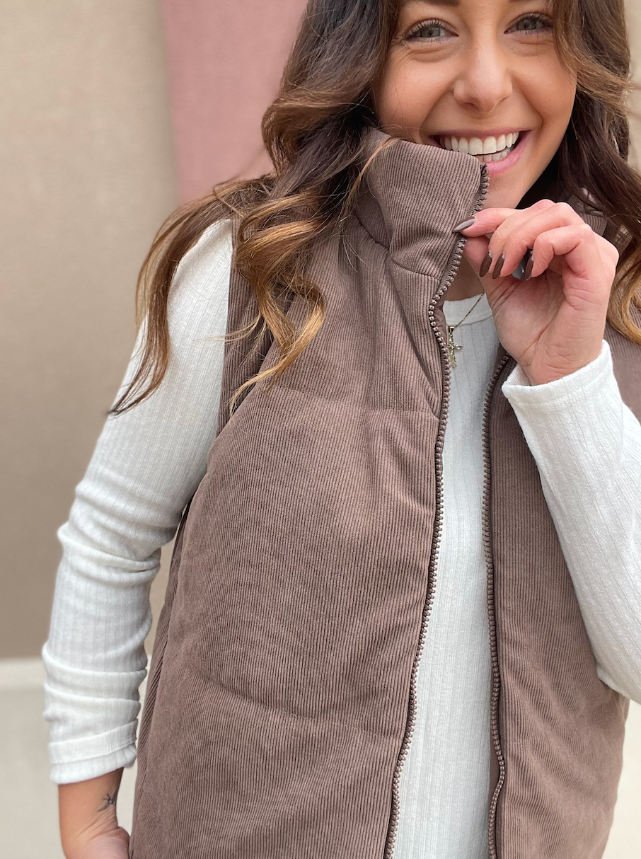 Layer up with double the style! This reversible cropped zip vest flips between cozy corduroy and puffy warmth, giving you two looks in one. Rock the textured corduroy side for a vintage vibe or switch to the plush puffer for extra coziness. Handy pockets keep your essentials close, whether you're running errands or hanging out. Perfect for transitional weather!