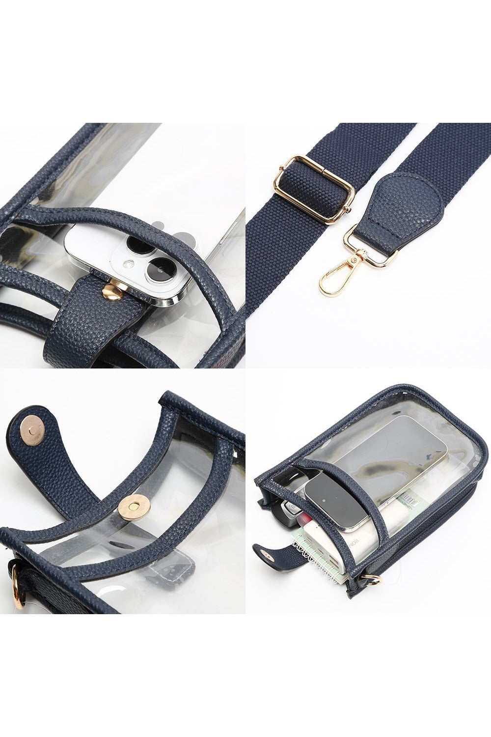 Size : 5.5" X 7.9" X 2" Strap Size : 41" L / Adjustable, Detachable One Outside Slip Pocket Magnetic Snap Button Closure